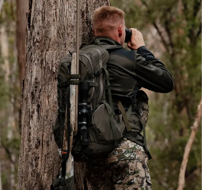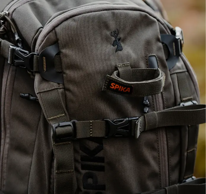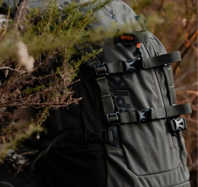 The Spika Drover II 35L Pro Pack is your ideal companion for one-day adventures. Be it hunting, fishing, hiking or any outdoor adventure the Pro Pack will allow you ample storage and configuration options to suit your needs. Designed for durability and functionality the Pro Pack has 2 main large storage zones with 2-way zippers, a front quick-access pocket marked with an orange zip toggle and side pockets. This gives you plenty of ways to choose where to store all your gear from additional clothing layers, camera equipment, optics, first-aid, food, water and other accessories.