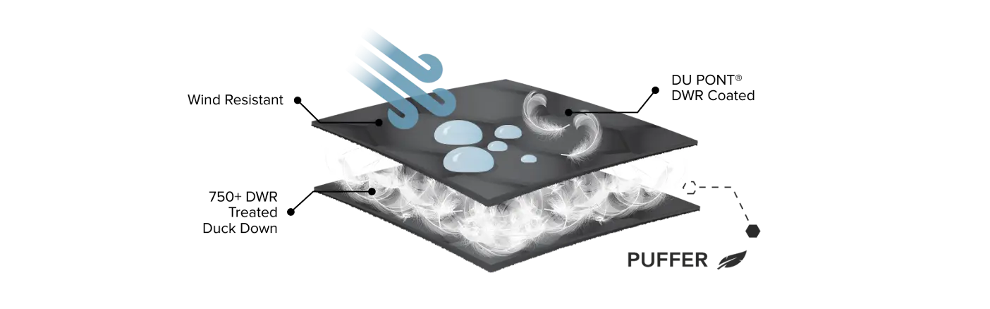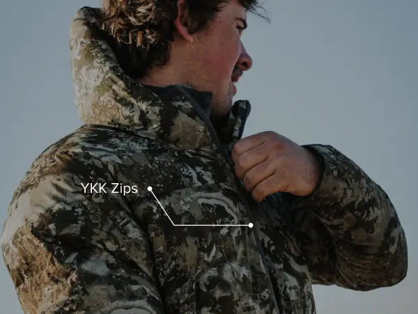 Heat insulating layers like the Spika Terra Puffer Jacket are the cold weather insulation layer, providing maximum warmth from extreme cold. Heat insulating layers retain body heat by storing warm air between the down baffles, while still remaining packable and light weight. If you get too hot, simply unzip the front zipper to dump heat if the jacket is doing its job too well. For cold weather conditions while glassing or those chilly mornings at the campsite the Terra puffer will keep you toasty.