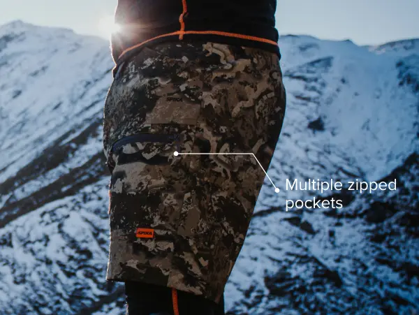The Spika XONE Shorts feature a durable composite fabric, multi directional stretch fabric that allows a wide range of mobility and flexibility. These utility minded shorts are designed with soft fabric to protect from chafe and keep you cool while moving fast. These hunting shorts feature side, thigh and back pockets giving you heaps of options for storage and of course all pockets feature durable YKK zips. The integrated adjustable belt ensures fit and comfort on the move. The Xone Short holds its own on hot, hardy and active hunts.